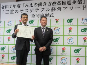 令和7年度「三重のサステナブル経営アワード」を受賞しました!