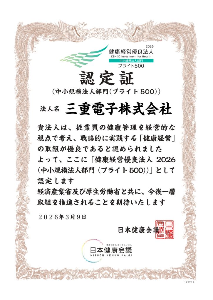 また、健康経営優良法人(中小規模法人部門)の認定企業の中から、従業員の健康づくりに積極的な取り組みや地域における健康経営の拡大に寄与する取り組みを行っている上位500法人を選定する「ブライト500」にも、3年連続で認定されました。