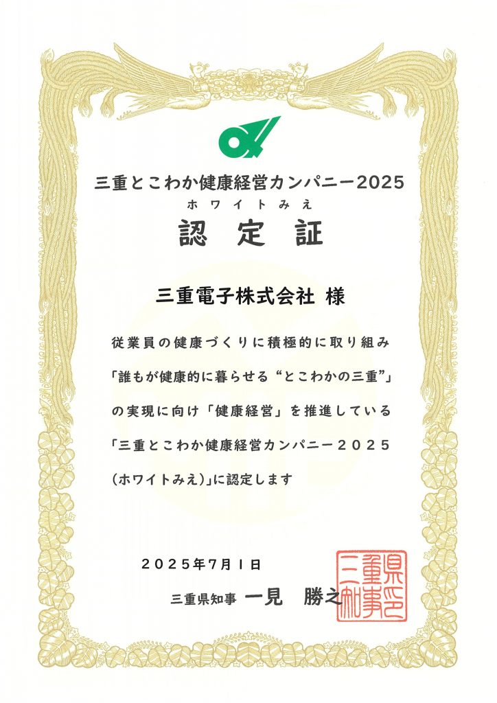 当社は「健康宣言」を掲示し、「健康推進事業所認定」を受けています。
